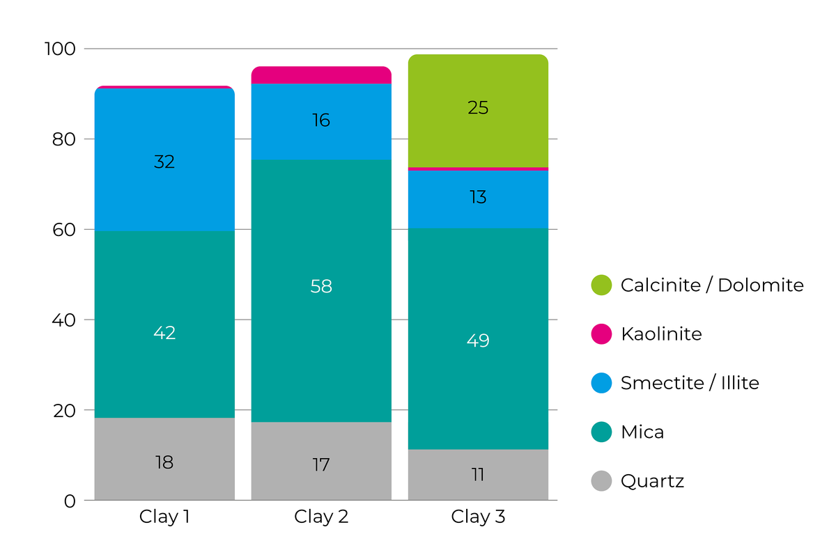 | Calcined clays can be calcined at 800 °C. Although CO₂ is released during calcination - similar to limestone firing - the required temperatures are significantly lower. | - | |||