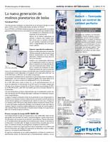 Los más precisos resultados de trituración en el más breve tiempo se consiguen con los nuevos molinos planetarios de bolas, de Retsch. Con el PM100 y el PM200, Retsch presenta una nueva generación de molinos planetarios de bolas con uno o dos unidades de trituración, que establecen nuevos estándares de rendimiento en este segmento de la producción. Aparte de las clásicas aplicaciones de mezclar y triturar, esos molinos también sirven para la aleación mecánica de, por ejemplo, materiales termoeléctricos o magnetizables, así como para moler coloides. (...)
