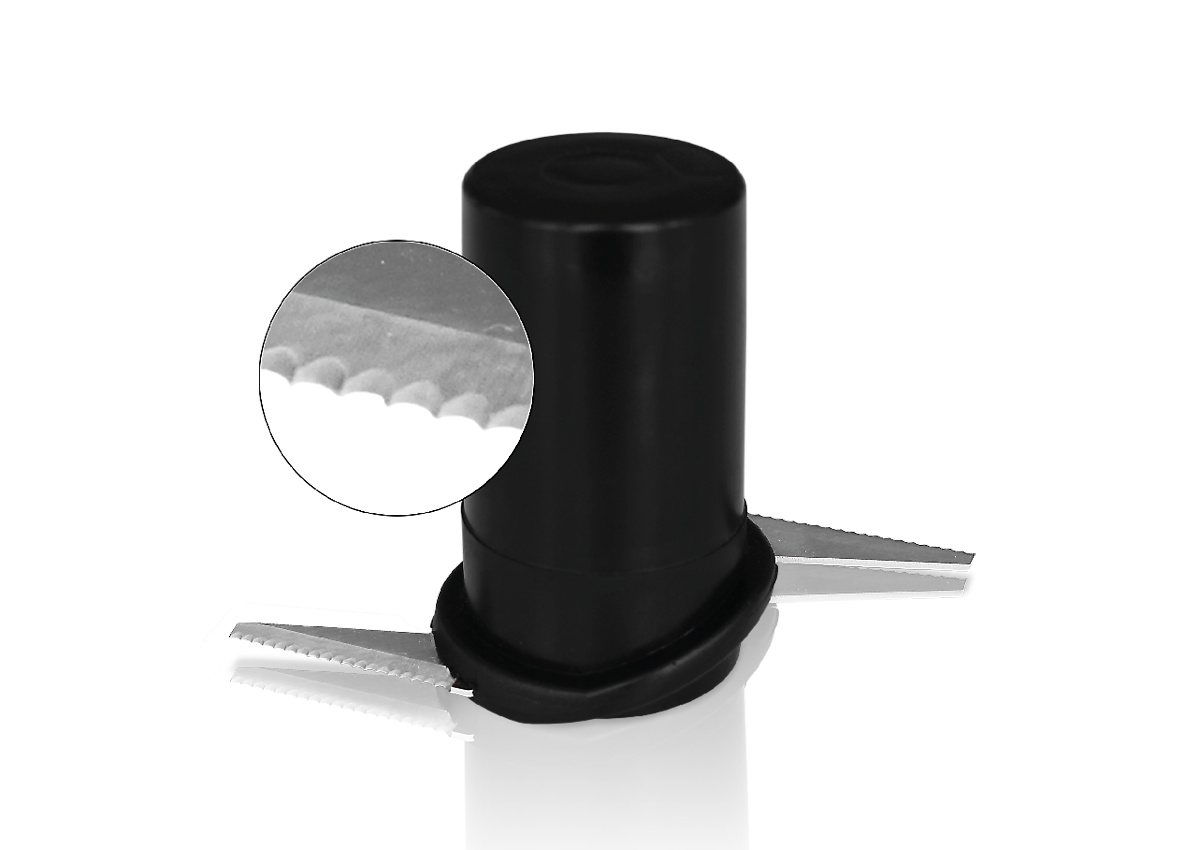 二叶刀头置于研磨罐底部的中心位置。根据转动方向,可以选择钝面进行大块样品的粗粉碎,或韧面进行样品的精细粉碎。刀头是由功率达1000瓦的电机进行驱动。转速可预选,并经电子控制,维持恒定,这些都保证了高效优质的粉碎均质化处理结果。