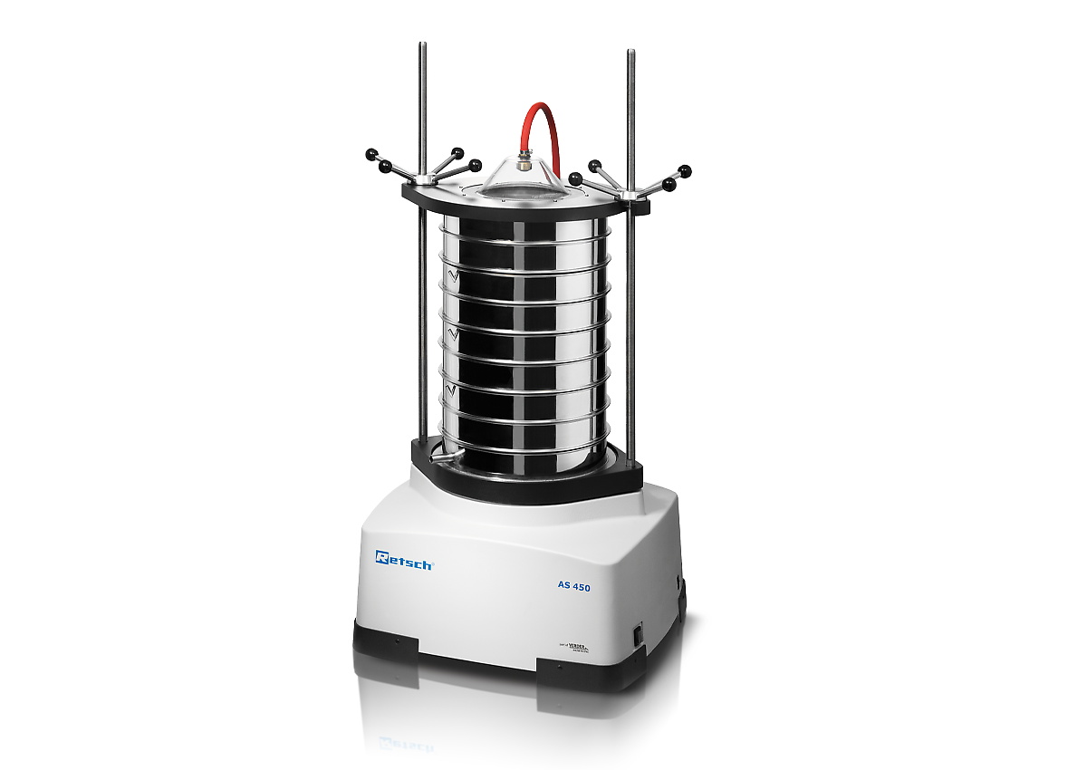 RETSCH 通过 AS 450 控制振动筛设计出了第一款适用于 400 毫米和 450 毫米筛子的 3-D 振动筛。它可用于干筛和湿筛,筛分样品量最多可达 25 公斤。AS 450 控制装置结合了电磁筛分的优点 - 振幅可控、重现性最高 - 以及基于 CET 技术(连续能量传递)的强大驱动力。